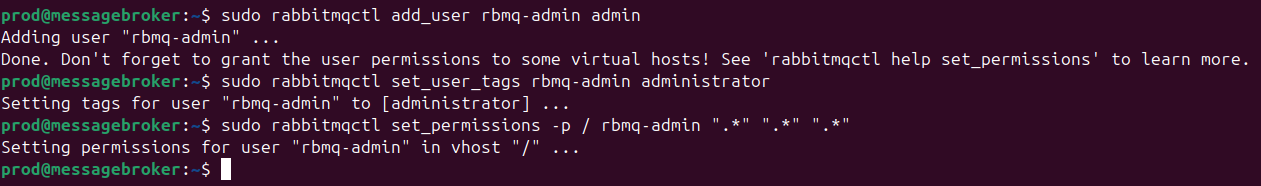 sudo rabbitmqctl set_permissions -p / rbmq-admin “.*” “.*” “.*”