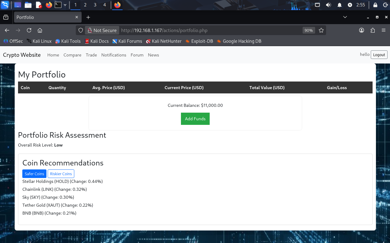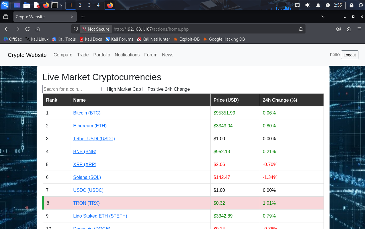 Now from Kali Linux, when i enter 192.168.1.167 (OPNsense WAN IP), I am redirected to the web server landing page.