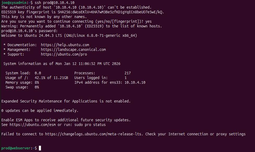 After giving the Web Server VM an IP, I SSH’d into it from my Ubuntu desktop VM.